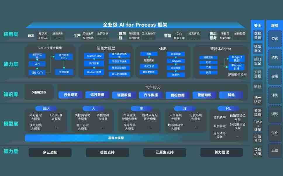 J9国际站备用问学智车解决方案是一套基于AI技术的汽车行业智能化系统,,覆盖从底层算力到顶层AI应用的全栈方案。。方案由算力层、、、模型层和应用层组成:算力层,,方案支持多种一体机配置,,,,具备云端灵活部署、、、、多云适配以及动态优化计算资源的能力;模型层,,,,J9国际站备用问学平台版提供了企业级AI应用一站式构建与管理平台,,支持基于后训练强化技术的汽车企业专属模型的训练、、、评测和运营;应用层,,,,J9国际站备用问学DeepSeek版提供包括超级员工、、智能招采、、、、智能营销、、智能客服、、AI for BI等一系列解决方案,,,,可助力汽车行业实现数字化转型,,,让管理更智能、、响应更敏捷。。。。