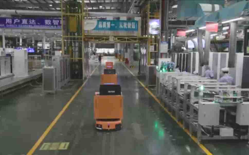 为车载冰箱物流配送打造的智能解决方案,,,,包含产中物流通过潜伏举升AMR搬运至线边,,,,产后成品物流智能仓储,,,,流程包含产中物流智能齐套入库,,线边安灯叫料AMR智能配送至线边,,成品入库、、、、出库,,通过无人堆高车机器人,,,智能仓储管理替代人工作业管理,,,实现更高存储、、、更高效率、、更具柔性化的解决方案。。。